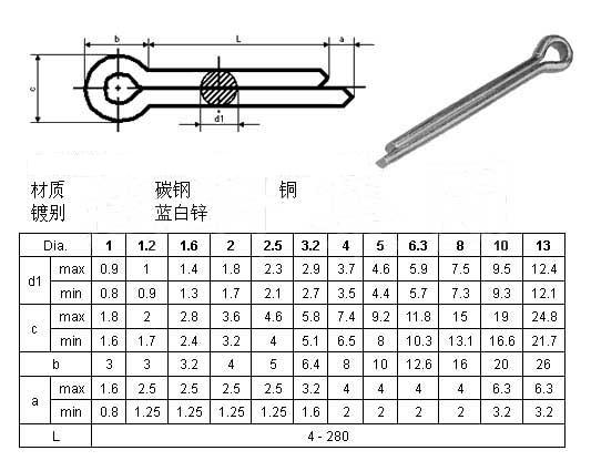 開(kāi)口銷標(biāo)準(zhǔn)范圍公稱規(guī)格為0.6~20mm的開(kāi)口銷